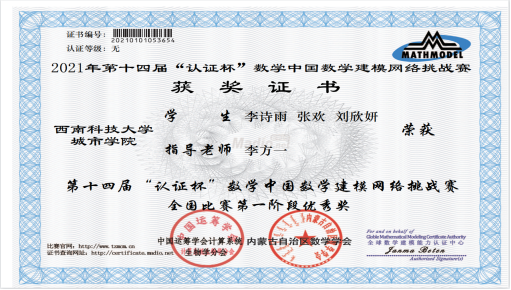 本专业积极极鼓励学生参与各类竞赛,在教师的悉心指导和同学们的共同努力下,参加第十六届挑战杯、全国大学生数学建模大赛、“数学中国”网络挑战赛、互联网+创新创业等行业大赛多项国家级、省级奖项。