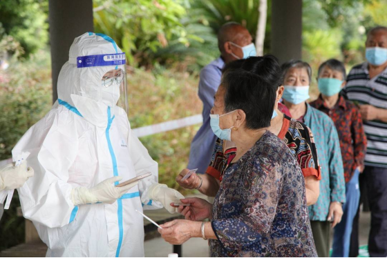 “请大家提前亮出健康码”“间隔一米,麻烦您往后退一点”“婆婆,我来帮您弄健康码”9月1日下午,记者在江阳区龙腾社区康乐苑核酸检测点见到了杨瑞雪,彼时的她正在引导群众排队有序进行核酸检测,凉风拂过她的额发,露出点点汗珠。