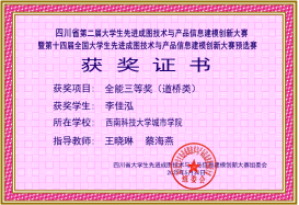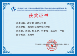 截至2021年年末,交通工程专业学生参加的竞赛有四川省“挑战杯”大学生课外科技学术作品竞赛、四川省结构设计大赛、全国交通科技大赛、全国及省级大学生先进成图技术与产品信息建模创新大赛、全国大学生数学建模大赛、四川省智能建造与管理创新大赛、大学生创新创业等竞赛80人次,获奖47人次,其中获得一等奖次占比5%,获得二等奖次占比45%,获得三等奖次占比50%。历年参赛或获奖照片部分展示如下: