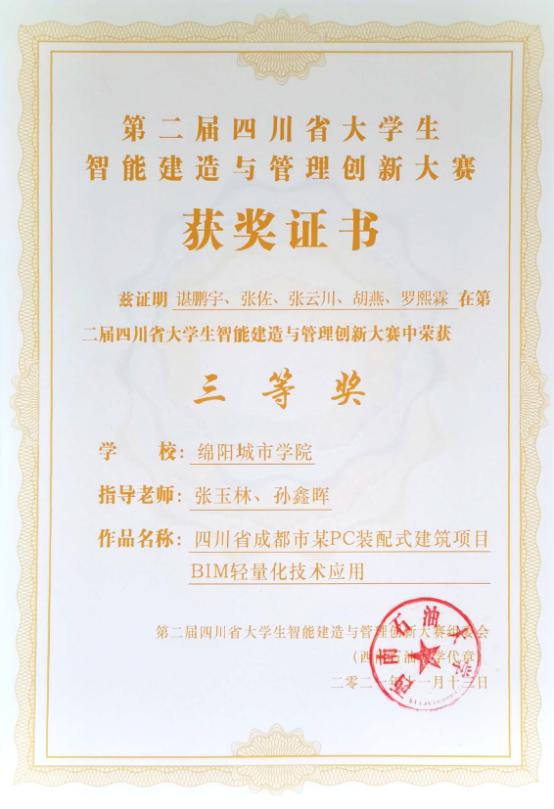 本专业成立有“装配式建筑社团”、“力学与结构”、“先进成图与信息模型”等学生专业社团,支持学生参加各类“大学生创新创业训练计划项目”、装配式类竞赛、 “BIM”相关竞赛、大学生结构设计竞赛等学科竞赛。近三年,学生不断在全国装配式建筑职业技能大赛、全国大学生先进成图技术与产品信息建模创新大赛、“BIM”相关的各类竞赛、四川省大学生结构设计竞赛等学科竞赛中取得优异成绩,近三年来指导学生发表论文30余篇,立项省级大学生创新创业训练计划项目30余项,学科竞赛获奖80余人次。