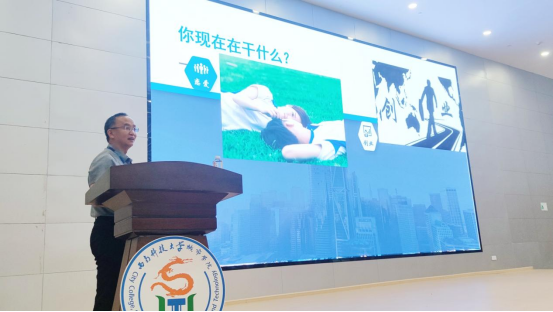 讲座之中,詹廷君教授从“大学应该干什么”、“什么是核心竞争力”、“如何打造核心竞争力”三个方面为学生带来了精神与灵魂的洗礼,让学生更加明确了大学生该如何作为。詹廷君教授谈到,学生所拥有的专业知识、职业技能对就业发展具有强大的支撑作用,但专业不等同于职业,因而要在校园学习中尽可能多学、多做、多看、多想,努力成为多专多能的复合型人才。