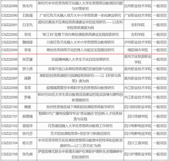 近日,学校收到四川省大学生思想政治教育研究中心2022年立项文件,马克思主义学院李瑶副教授申报的《高校优秀网络文化的育人功能及实现路径研究》项目经专家评审获批立项,这是我校首次获得四川省大学生思想政治教育研究中心立项资助,标志着学校在人文社科建设方面取得又一成绩。