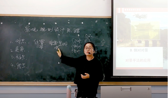 有一次,一名学生在听完她讲授的“对景与夹景”的教学节段后说:罗老师在课程导入环节中,引入典型的《手绘古诗》微视频向我们提出问题,启发我们从专业角度赏诗思考,线上还同步开展“以诗话景”主题讨论,引导我们去体会诗中的景观意境,让我从景观设计这样的一个专业角度去重新学习感悟了中国诗歌文化,并体会到了古代的匠人智慧。而且罗老师的教学PPT重点突出,排版精美,很多优秀的景观设计案例图片也能很好地吸引我们,感觉非常好!