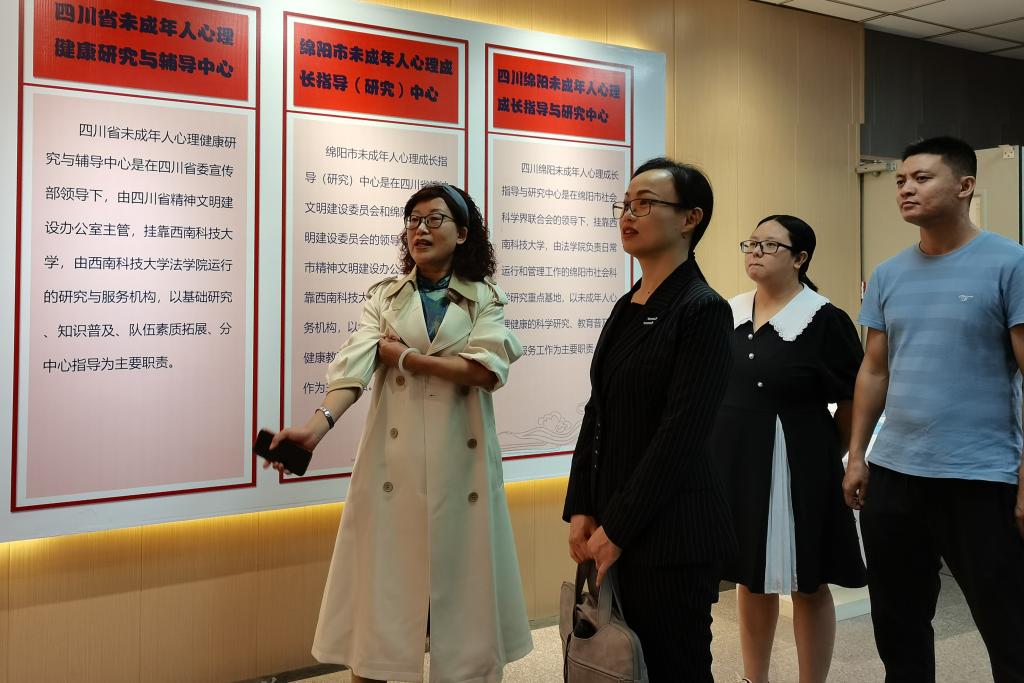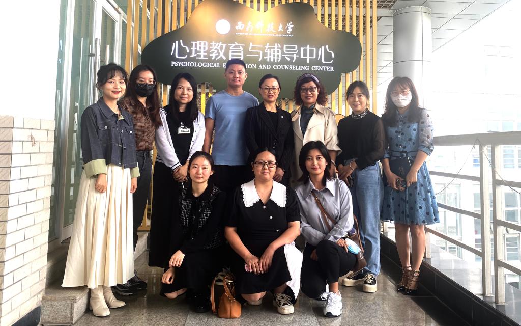 为加快大学生心理健康工作建设,提高心理健康教师的业务水平,扎实推进心理健康工作的开展,9月21日,学校负责心理工作的负责人祝海燕带领心理健康教师队伍一行,到四川省未成年人心理健康研究中心调研心理健康工作,并与西南科技大学心理教育工作部门和人员进行交流。